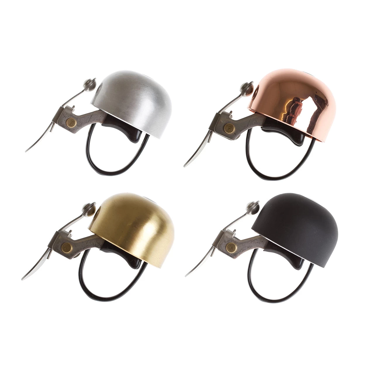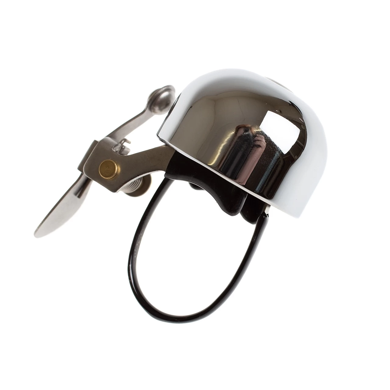 Crane bells are made in Osaka, Japan. These traditional designs are timeless and have beautiful clear ring tones. The E-ne is positionable on top of your handlebars and in front of your handlebars. Designed to fit bars 22.2mm to 31.8mm with a low profile stainless steel band thats vinyl dipped to prevent scratching your bars.