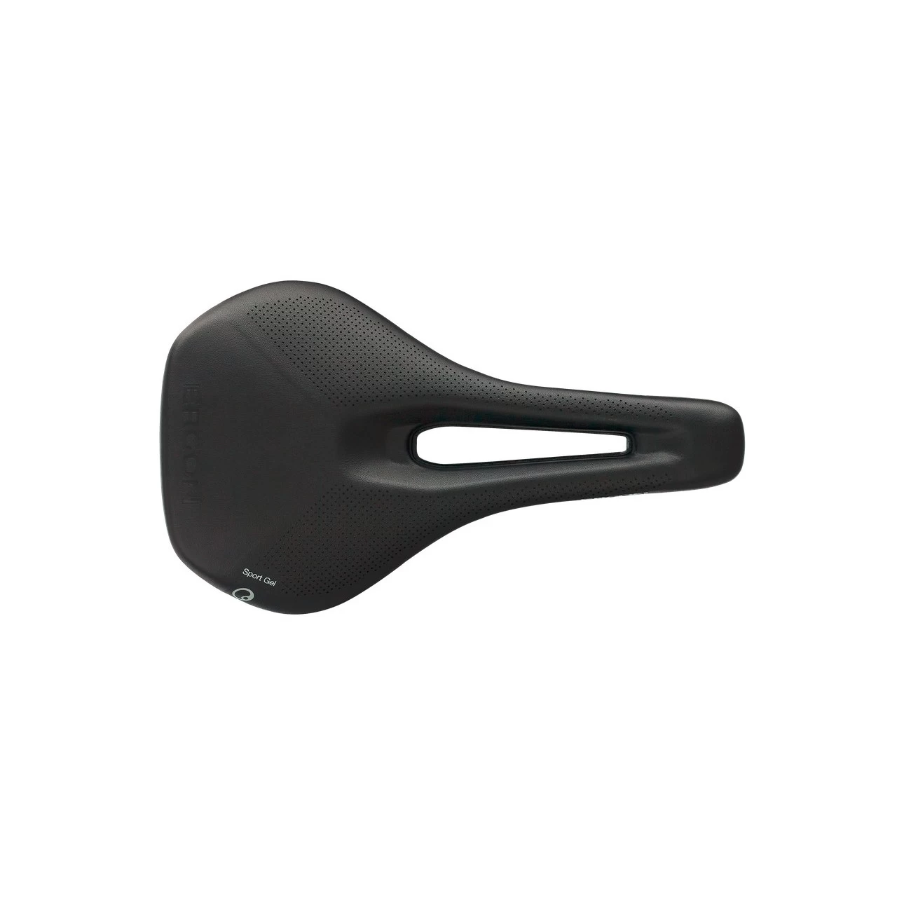 The gel road bike saddle for women. Shape and relief fit exactly to the female anatomy in a typical, bent-forward riding position. Flat, yet comfortably padded: the genital and seat area is noticeably relieved by large gel pads.
