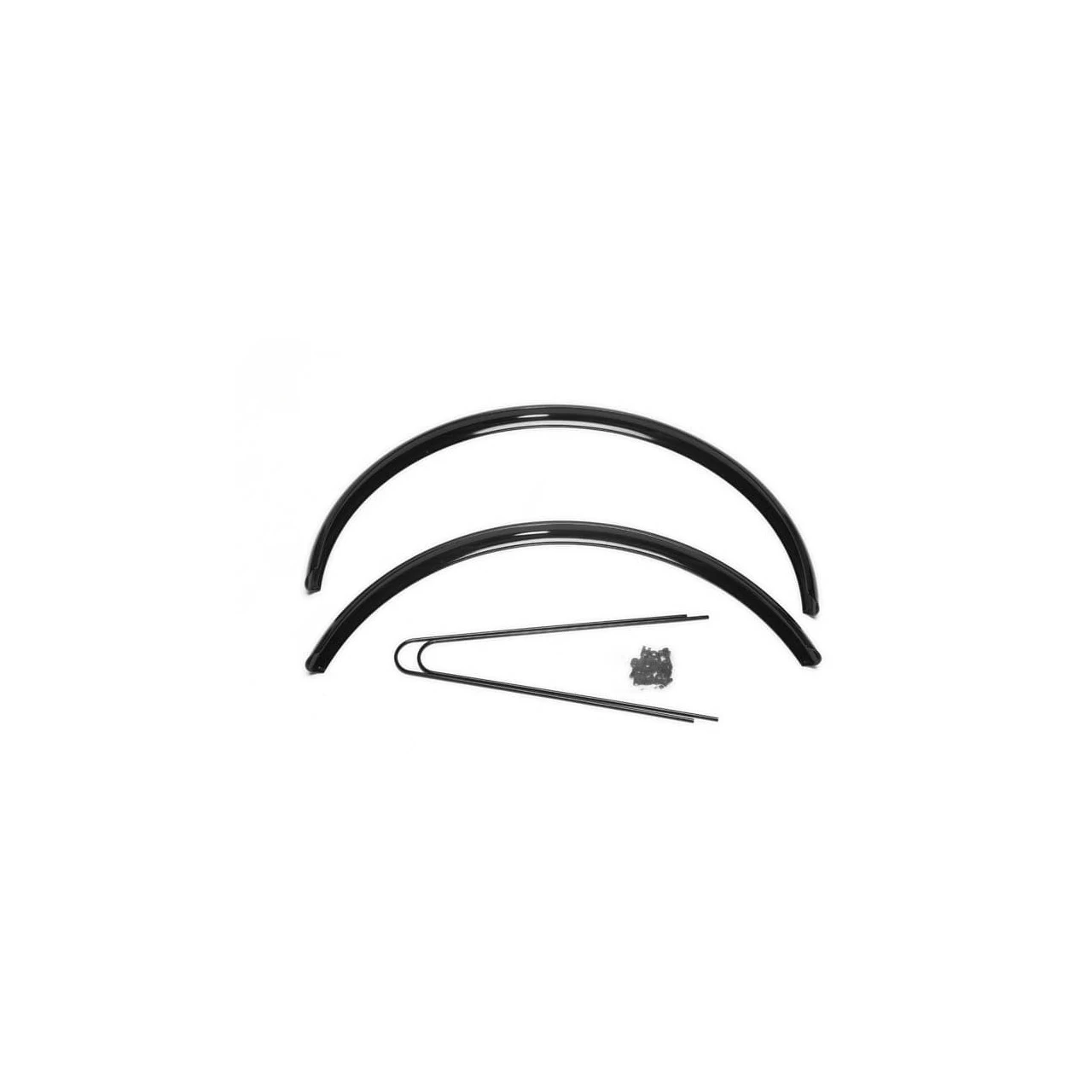 This fender set fits bikes with 700C wheels and up to 45mm wide tyres depending on the tread pattern. The set includes all parts needed for installation. Your frame and fork need to have fender mounting points on dropouts for attachment.