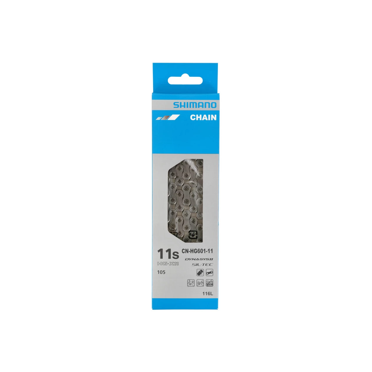 G-X11 directional chain realize more smoother shifts and greater overall performance. Right and left sides are optimized for front and rear shifting respectively. Silky driving, accurate shifting: with the Shimano 11-speed chain CN-HG601 With an HG-X11 special asymmetric plate design and Shimano’s new SIL-TEC surface treatment, a quieter ride, increased chain life and better performance await you.