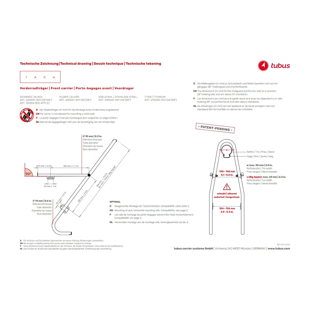 The sturdy Lowrider by tubus – now also in stainless steel! Highly durable, resistant to rust and can be positioned flexibly. An indestructible, uncomplicated travel companion in an elegant style!