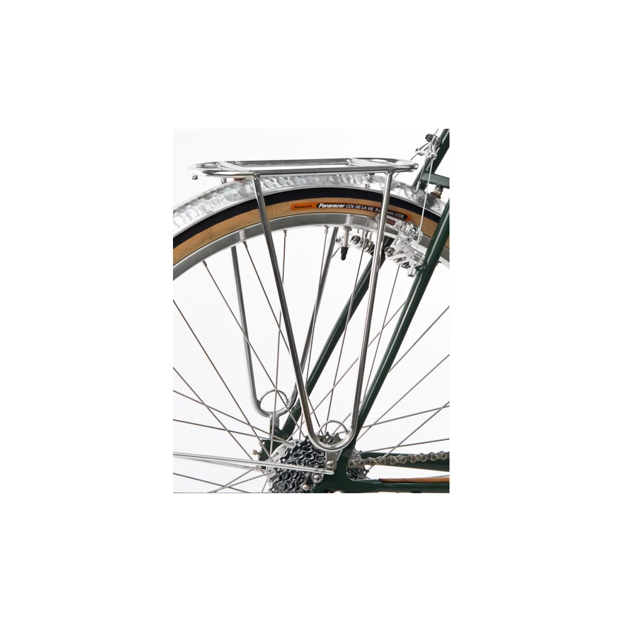 It is our version of the rack made by Alex Singer and other legendary French builders. As with the classic racks, ours has proper bosses for fender mounting. An optional and detachable strut (Rack Strut, item RA-0035) connects to the brake bridge for those unfortunate bikes with plastic fenders or no fenders.