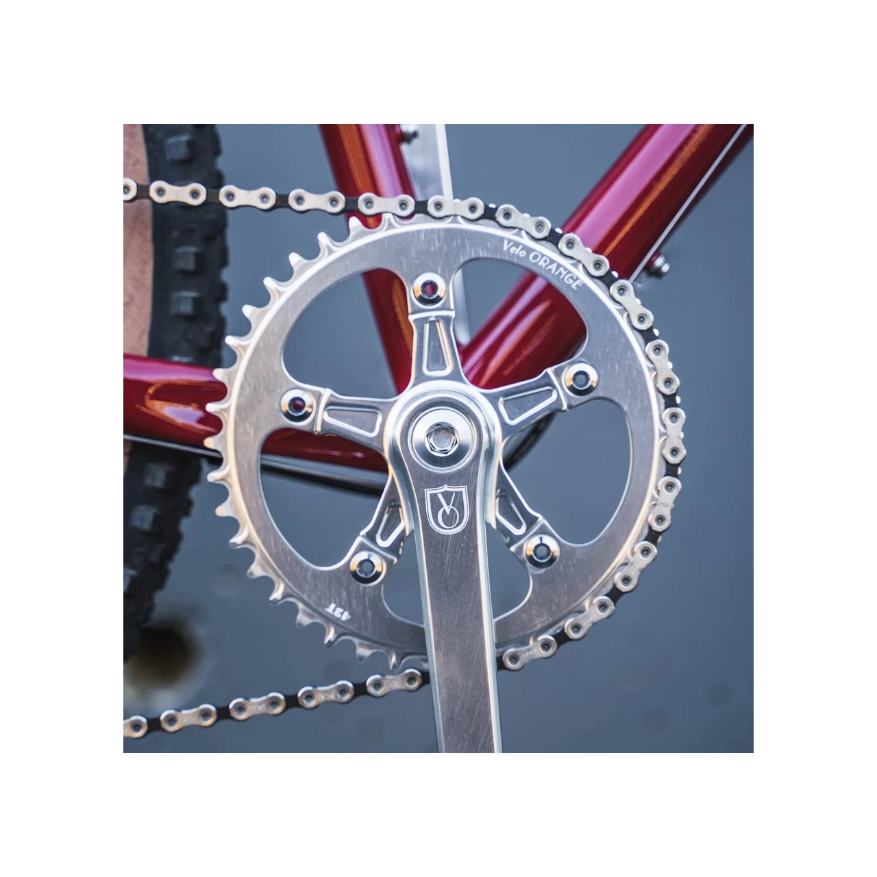 Here is a durable and stylish single ring crankset ready for a 1x, singlespeed, fixed gear, or even an internal rear hub! Cold forged and machined from 7075 aluminum alloy this chainset is strong and light. The 42 tooth chainring features a narrow-wide profile for excellent chain retention for all drivetrain styles. All stainless hardware with allen head nuts/bolts. Includes aluminum machined dust caps and BB bolts. Dust caps function as self extracting crank hardware.