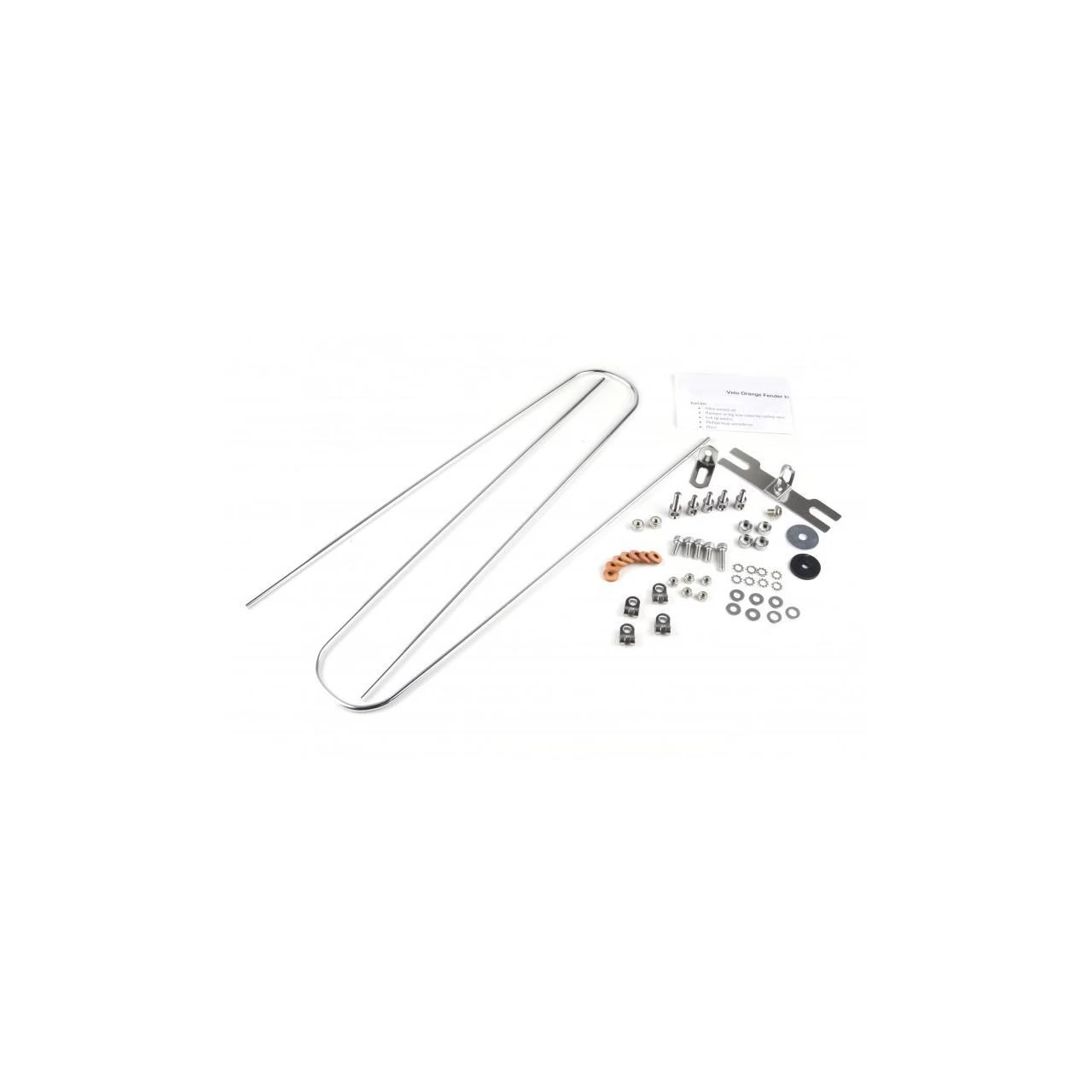 - Hardware kit includes: 5mm polished aluminum stays, R-clips and screws, L bracket, reinforcement plates, stay-to-fender closed eyelet bolts, fork crown daruma, sliding bracket, leather washers, and detailed installation instructions